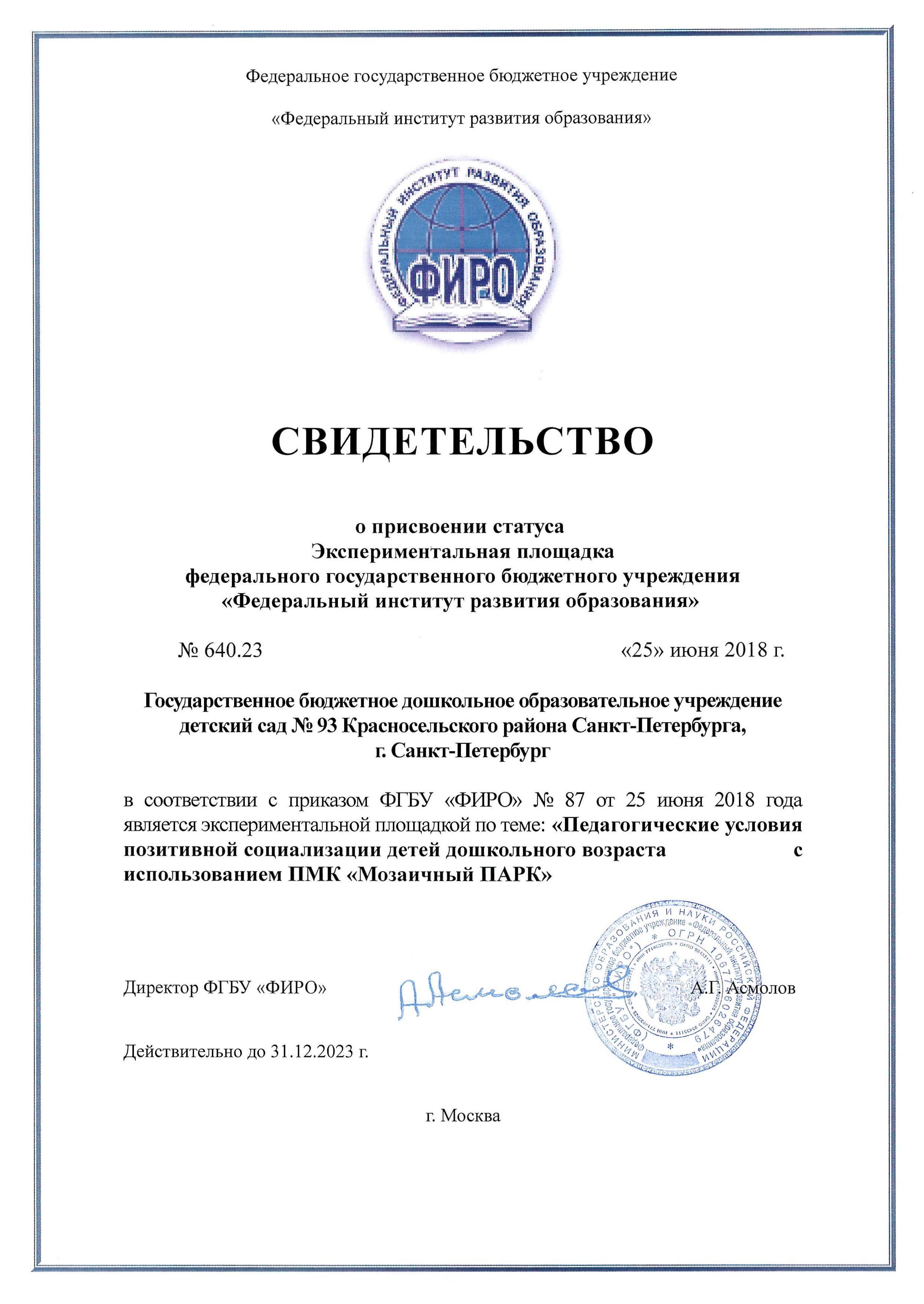 | Свидетельство о присвоении статуса | |